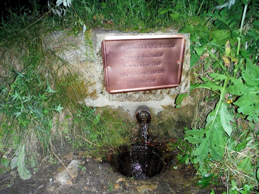 Po dohodě s majiteli a trampy byla doplněna cedulka "Mikiho" studánka jako poděkování kamarádovi, který se nejvíce zasloužil o rekonstrukci.