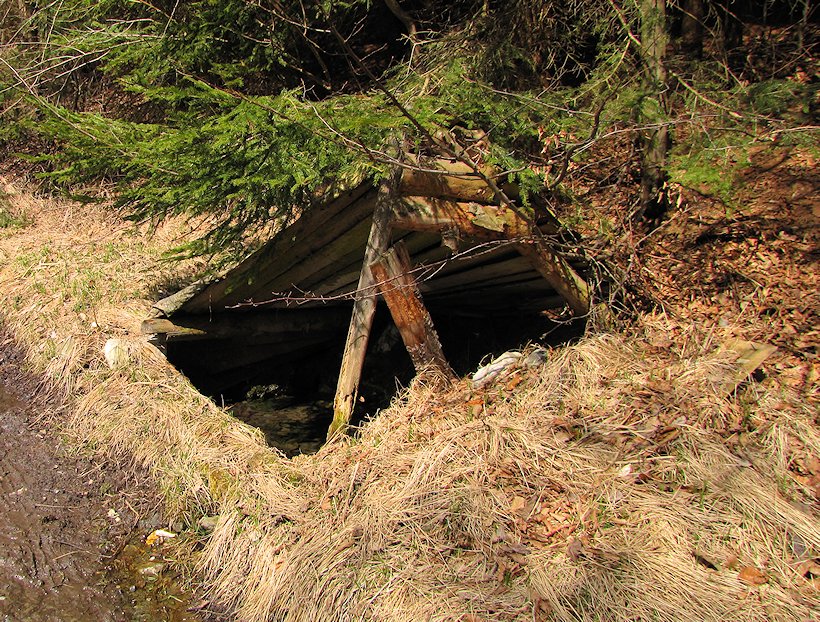 Všechny informace o studánce mi dodal Jan Smékal, já ji zajela jen zkontrolovat a zaměřit. Studánka je poněkud poničená, protože je hned u cesty, do které vyvěrá a cestu rozmáčí. Krytá je kdysi provizorní střiškou. Ale voda je studená, výborná a na vlastní zkoušku pitná.