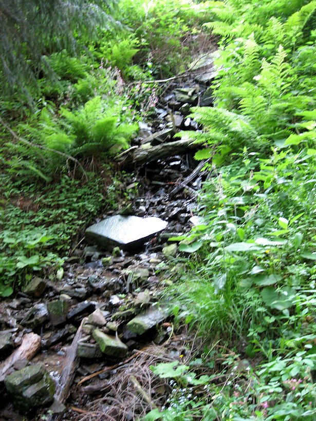 Pramen říčky Olešné, vytékající pod lesní cestou na západním svahu Solárky.