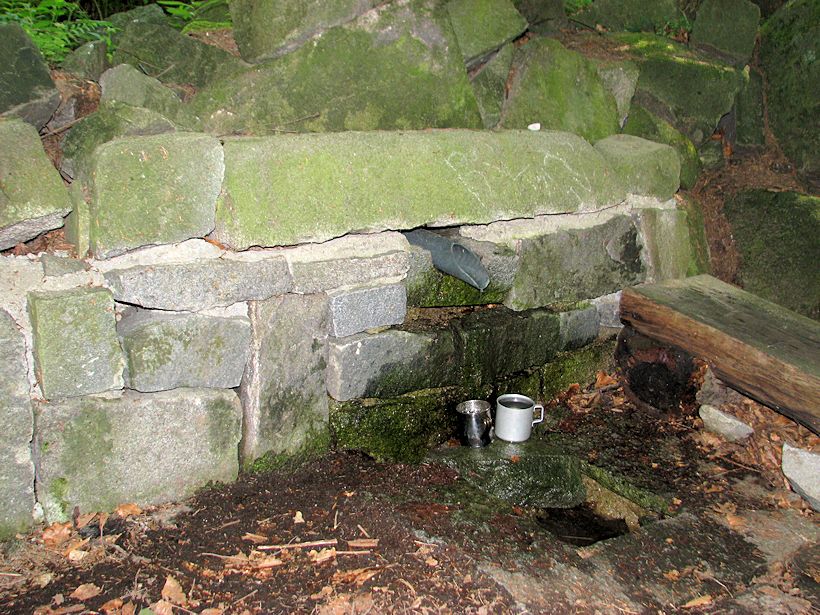 Červenec 2024 - pramen teče, přístřešek nad ním již neexistuje. Aktuální foto: Martin Mlečka