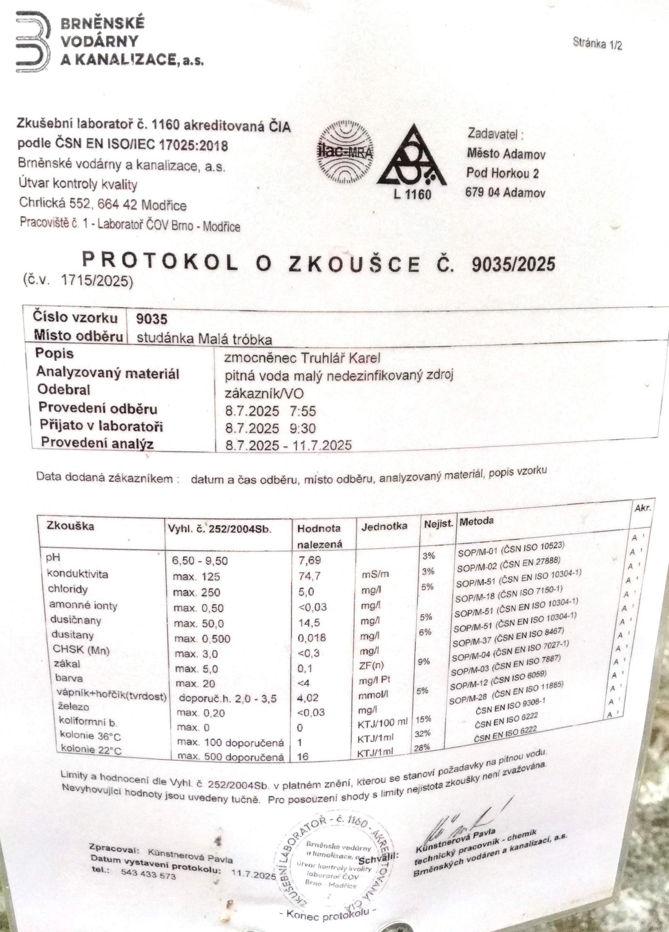 | 1041 | Vodní zdroj Sequens | S | PZ | Ukaž rozbor | 25.03.2025 |