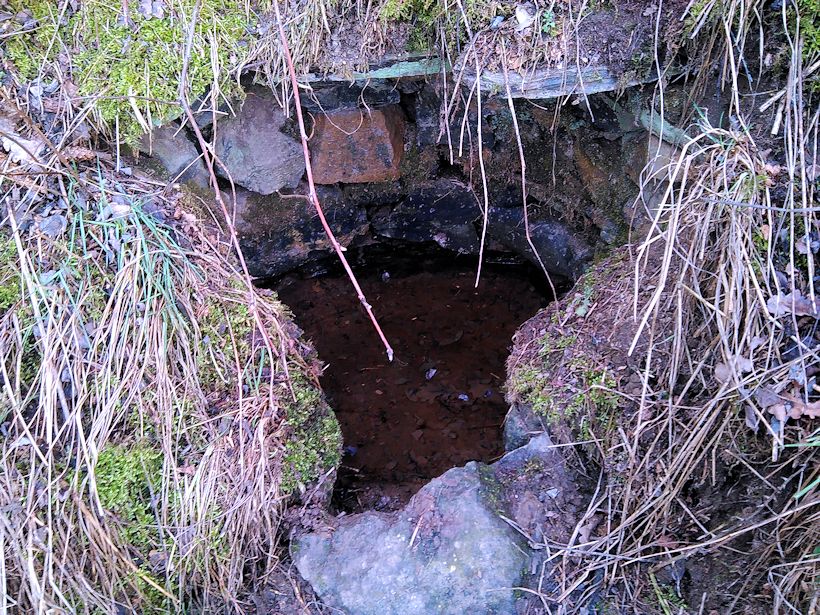 Březen 2020 - voda ve studánce je, ale dosti špinavá