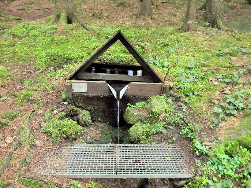 Červenec 2019 - studánka zničená lesní technikou, skoro neteče, pramen zřejmě prosakuje kousek vedle. Napít se nedá.
