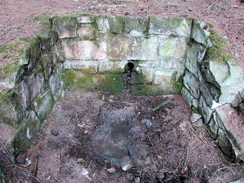 Květen 2017 - z trubky neteklo nic. Pod trubkou po mechu jsme nakapali za hodinu asi tři litry.