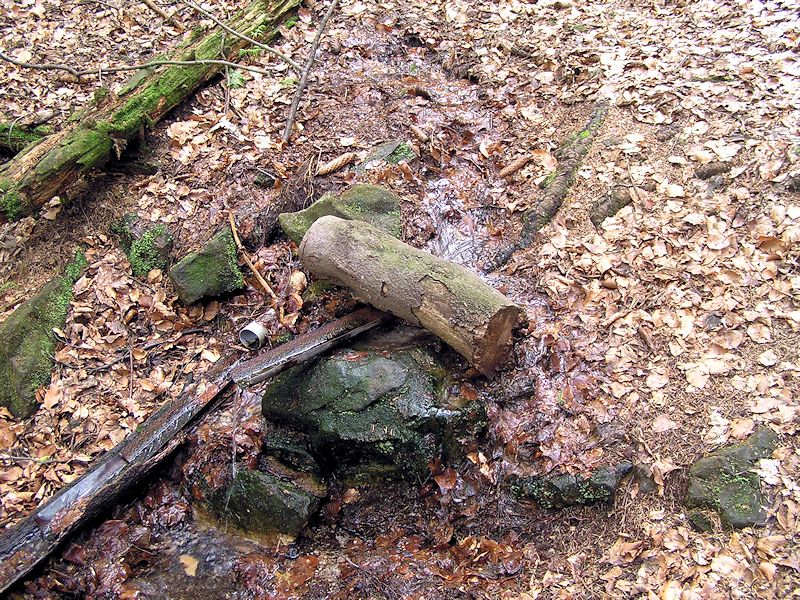 Srpen 2025 - pramen v pořádku a vydatný, velmi studený a vhodný na doplnění vody, foto: Václav Blahovec