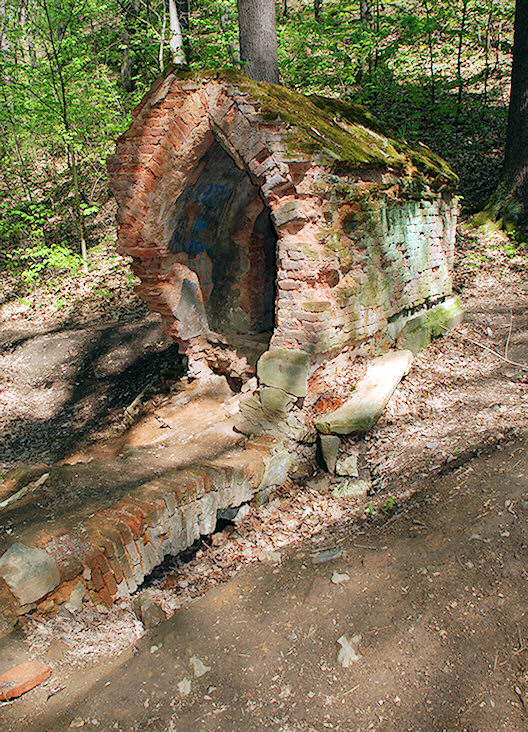 Kdysi výstavní studánka, v poslední chvíli (2015) sice zrekonstruována, ale původní stav (s volně přístupnou studánkou ve stavbičce vlevo od podtékajícího potoka pod mostkem) to není.