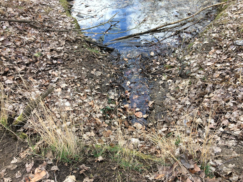 09.04.2020 - Pramen čisté vody vytéká zpod svahu do nádrže.