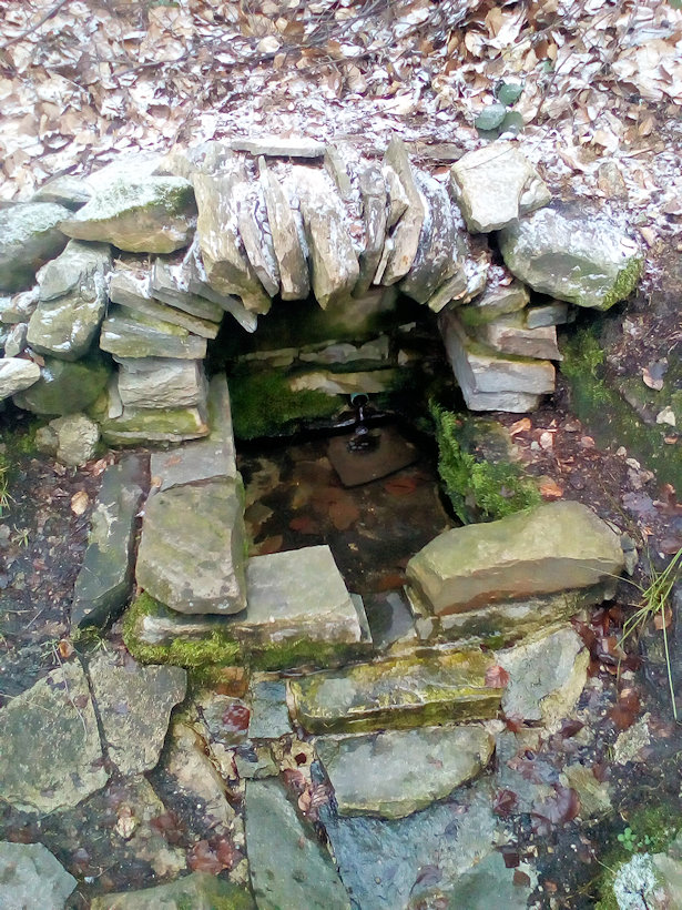 Duben 2023 - na studánce je štítek se jménem Bohunka a studánka je opět funkční, voda teče. Aktuální foto Ondra