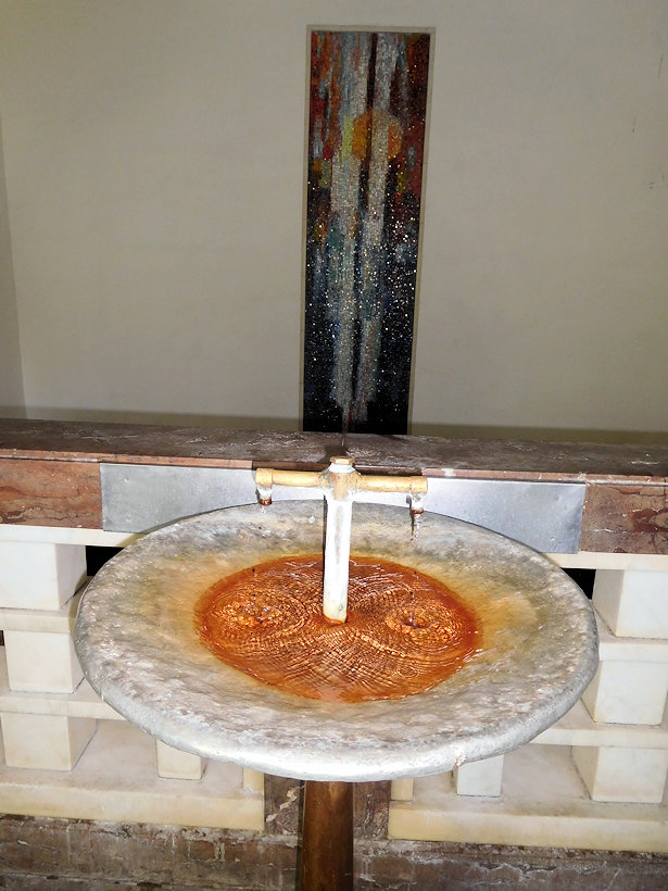 Červen 2024 - pramen byl vyveden do stále přístupné Sadové kolonády, společné s Hadím pramenem. K původnímu vývěru v budově léčebny se nyní už nelze dostat, prostor je využit jako skladiště. Aktuální foto.