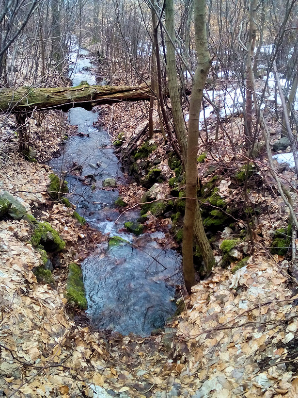 Červenec 2020 - výtok důlních vod ze štoly Večerní hvězda není zřetelný, pod haldou po cca několik desítek metrů lze vidět obdélníkovou studánku s vodou. Může jít o současný výtok důlní vod. Aktuální foto Jaroslav Ociepka