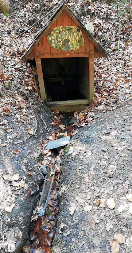 Studánka na modré značce ze Zábřeha do Lupěného v Zábřežské vrchovině.