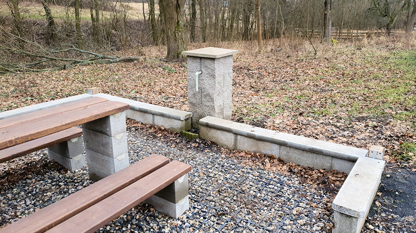 Pravděpodobně poměrně nově vybudováno, posezení, voda teče z plastové trubky z vyzděného sloupku. Kvalita vody neznámá.