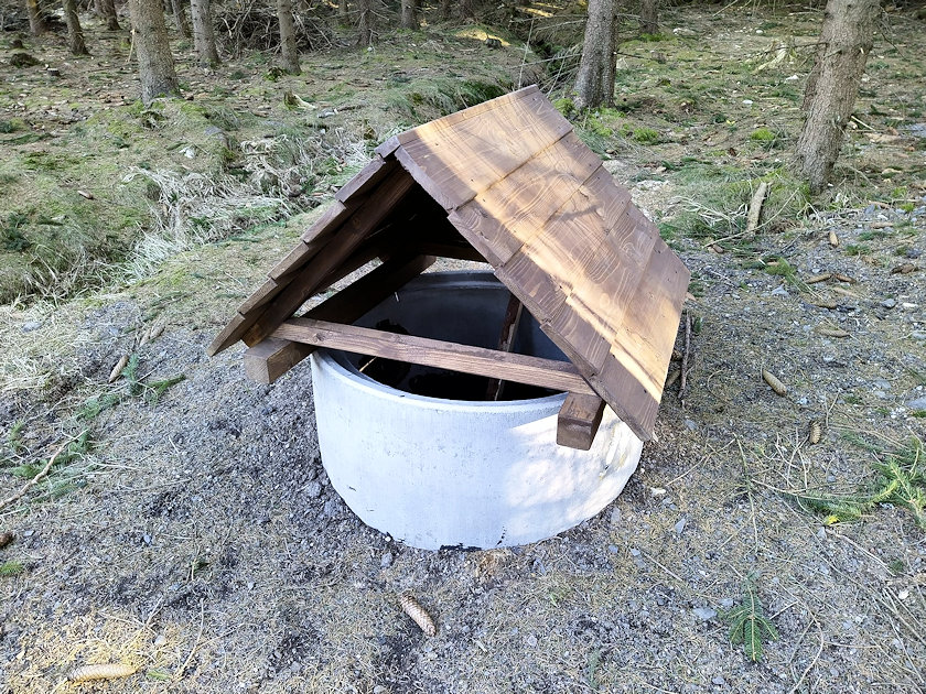 Prosinec 2023 - Lesy ČR místo označili jako Pramen Lužničky (těžko hádat proč), a umístěnou cedulí znemožnili přístup k vodě uvnitř skruže - viz aktuální foto