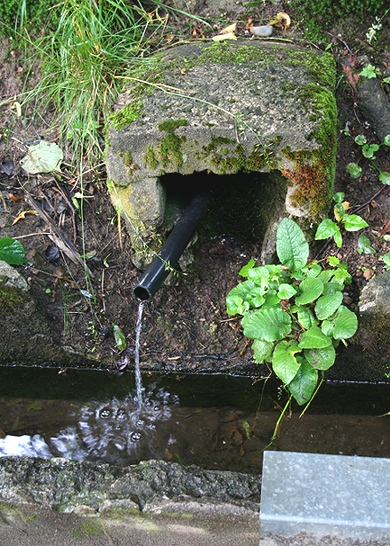 Studánka na okraji Rožnova v Hážovicích, voda z ní vytéká do podlouhlého oplechovaného korýtka. Na malém prostranství před ní je lavička k odpočinku.