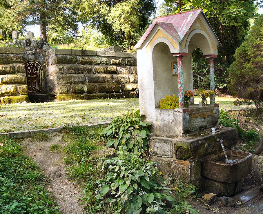 Pramen se nachází pod poutní kaplí Panny Marie Pomocné.