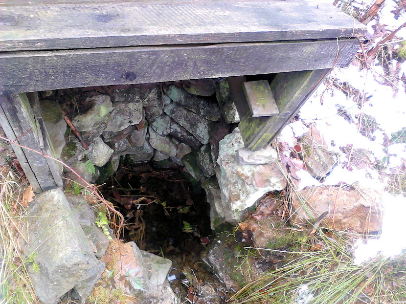 Únor 2012 - studánka je zarostlá ve smrčině, pár metrů od křižovatky lesních cest a vede k ní úzká cestička. Polohu opravil a nové foto zaslal Pavel Wirth.