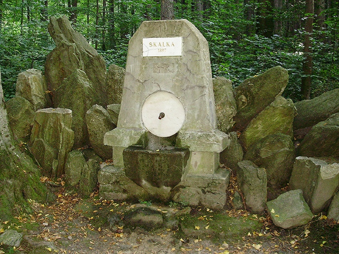 Pramen se nachází na modré turistické značce mezi Jeseníkem a Křížovým vrchem, ve Smetanových sadech. Pramen se původně jmenoval Rumpel-Quelle (podle firmy, která jej vyrobila či nechala vyrobit), později se pramenu začalo říkat Skalka podle úlomků skály za pramenem a vedle pramene. Voda je prý přiváděna odkudsi výše ze svahu Křížového vrchu. Voda pramene je velmi chutná. Pramen má vydatnost 1 litr za minutu a teplotu 14,8°C. Na bílý kruh, ze kterého vytéká voda, je nyní nově přidělaná hlava lva. Martin Mlečka.