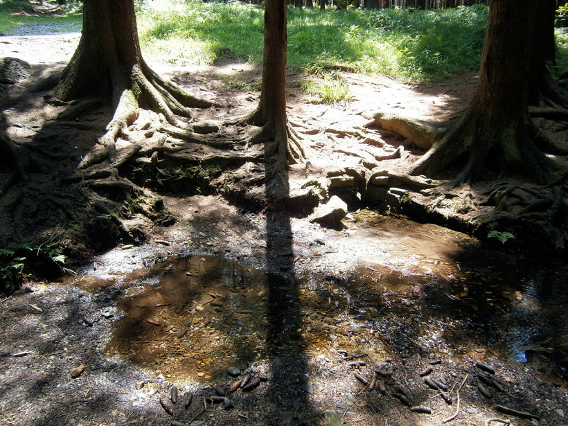 Červenec 2025 - okolí vykácené kvůli kůrovci, prameniště jsou dvě, voda čistá, ledová - foto Roman