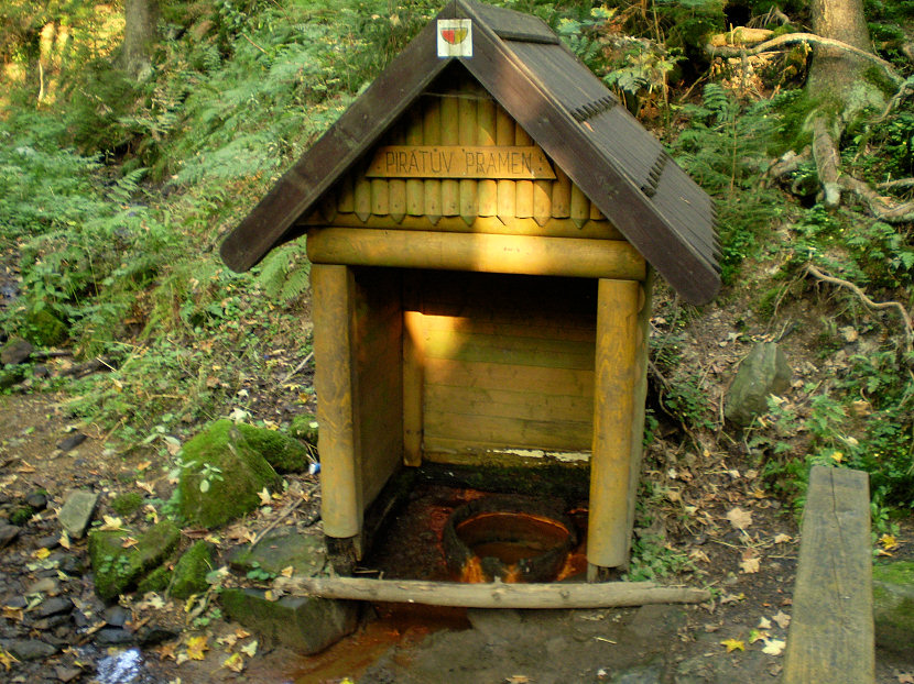 Pottovo údolí, ve kterém se pramen nalézá, dostalo svůj název pravděpodobně podle úšovického obyvatele Hanse Podda (též psáno Potta), který se zde okolo roku 1528 snažil dobývat zlato. Pirátův pramen, kterému se též říkalo Klinger nebo Skaut, je nejsevernějším a jediným přirozeně vyvěrajícím pramenem z pramenů tohoto údolí. Vyvěrá v zastřešeném dutém kmeni na levém břehu potoka.