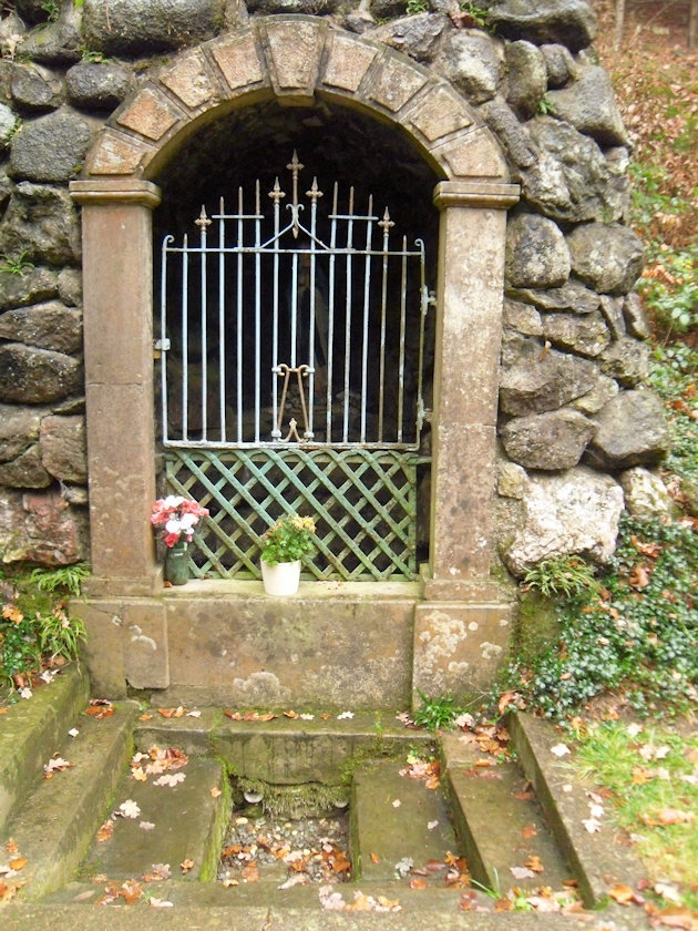 Prosinec 2021 - cca 20 m východněji, naproti kašně s pítkem, je ještě jeden vývěr se dvěma trubkami přímo pod Lurdskou jeskyňkou.