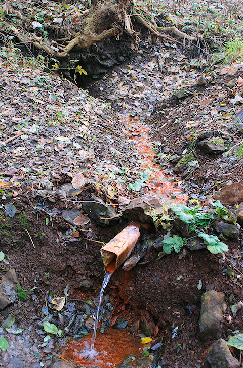 Rozsáhlé prameniště s jedním výrazným železitým pramenem v malém údolíčku mezi silnící a (opuštěnými?) chatami.
