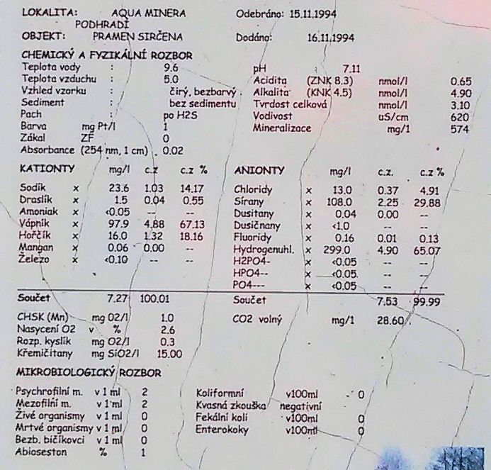 | Datum | t | Vyd | pH | EC | TDS | tvrd | NO3 | NO2 | NH | PO4 | Cl | Fe | CHSK | počasí | Měřič |