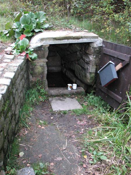 Květen 2025 - studánka bez vody, pouze trochu mokrý kámen uvnitř