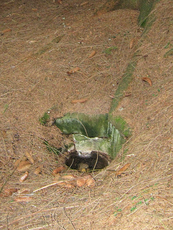 Z červené značky je značena odbočka k této studánce. Studánka v tomto období jen velice pomaloučku kape. Nějaký dobrák opatřil skruž pokličkou, aby do studánky nenapadalo zbytečně moc listí. Foto z listopadu 2016 - Dana Bartušková.