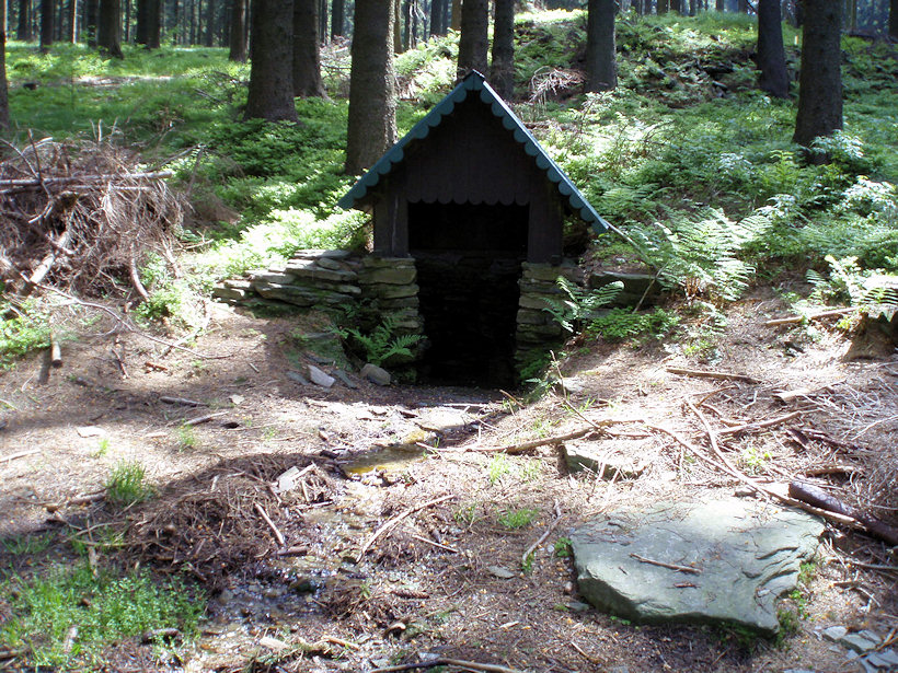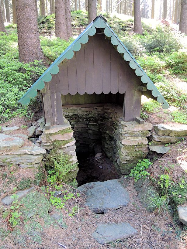 Srpen 2018 - studánka byla opravena, pramen vyveden níže. Aktuální foto: Pavel Veverka