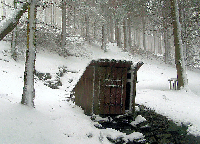 Červenec 2021 - studánka poničena (možná probíhající těžbou v okolí). Nabrat vodu není možné.