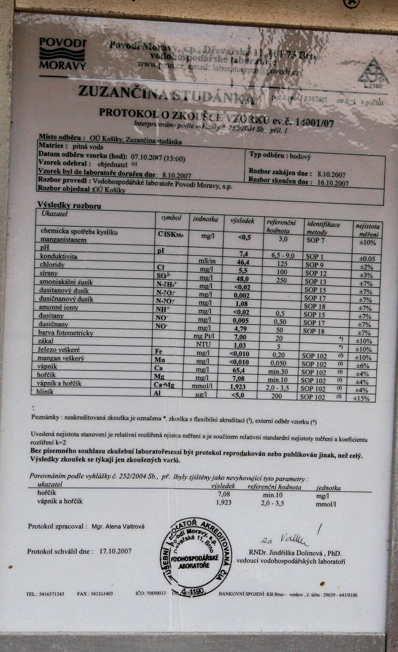 březen 2011 - nové foto a rozbor vody (z roku 2007) zaslal pan Machourek