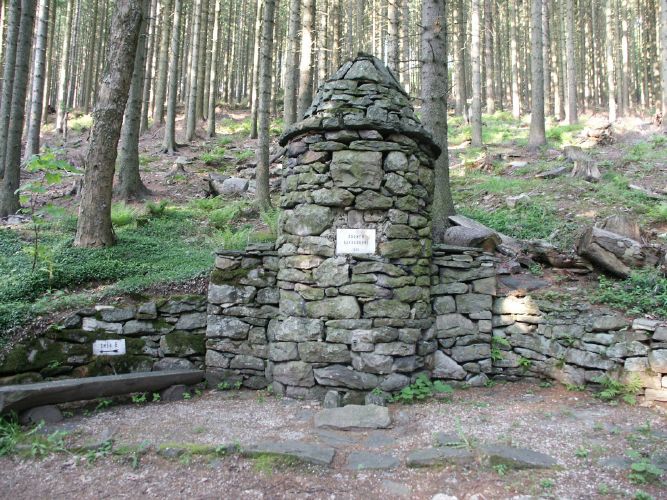 Červenec 2022 - pramen byl příkladně opraven a byla na něj umístěna nová deska s názvem Luisin pramen (původně pramen Sjednocení), který je v poslední době používanější. Porovnáním staré a nové fotky je vidět, že zhruba od úrovně desky nezůstal původní kámen na kameni, přesto byl původní tvar přesně zachován, je tedy třeba ocenit profesionálně odvedenou práci. Foto Martin Mlečka