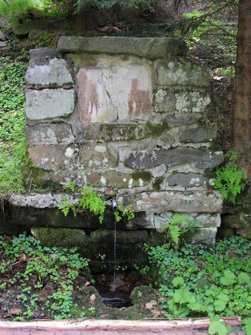 Červenec 2022 - pramen byl v loňském létě opět opraven a místo trubky dostal žulové korýtko. Aktuální foto Martin Mlečka.