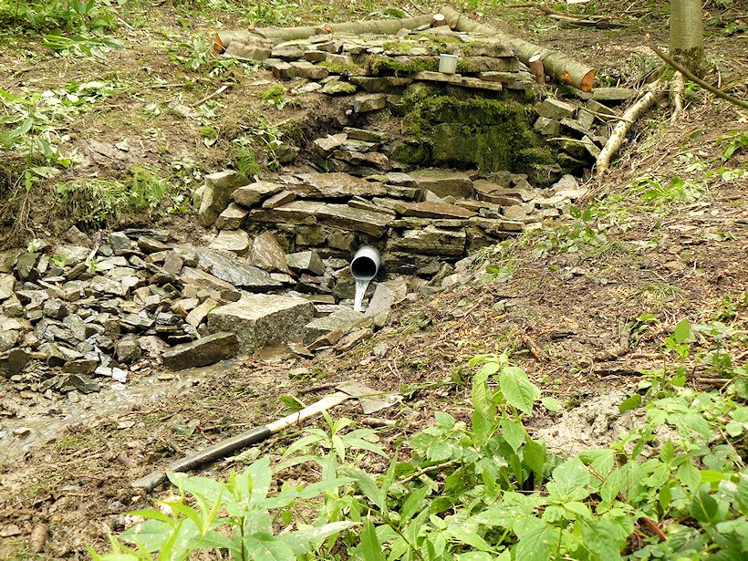 Pramen Jesenky, pod Sládkovou skálou. Červen 2013 - proběhla rekonstrukce studánky, která je zároveň pramenem řeky Romže. Bylo třeba vše pořádně utěsnit, protože voda prosakovala. Znamenalo to samozřejmě všechno rozebrat a znovu složit.