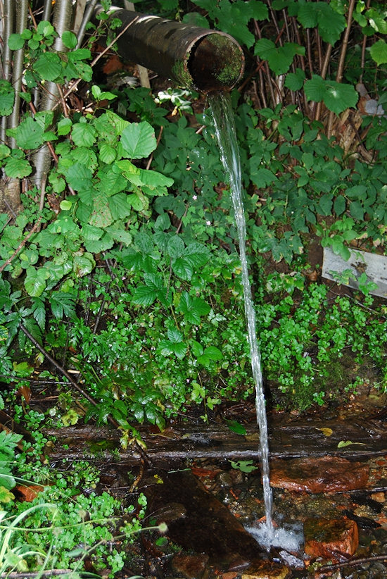 Duben 2022 - místo je podmáčené, voda vytéká z roury i stružkou mimo ni. Lesní cesta, která vede kolem, je podemletá zřejmě přívalem vody. Foto Zdeňka Obhlídalová