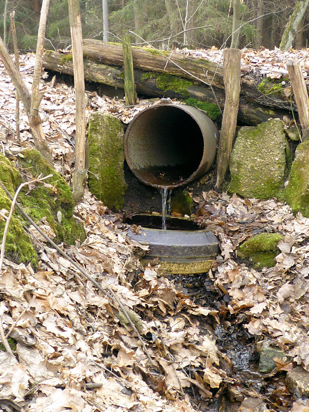 Květen 2015 - trubka pod cestou i přívodní koryto pramene na druhé straně jsou úplně vyschlé. Aktuální foto: Jan Řezníček