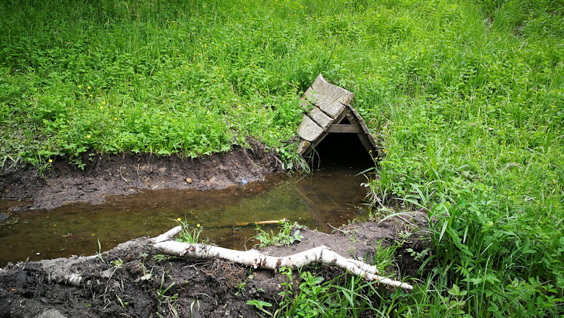 Uprostřed silně podmáčené svažité orchidejové louky (prstnatec májový) nenápadná neudržovaná betonová skruž (hloubka vody přes 1 metr) zastřešená obstarožní stříškou. Nad loučkou silné prameniště (zdroje: Za Mototechnou a V zahradě).