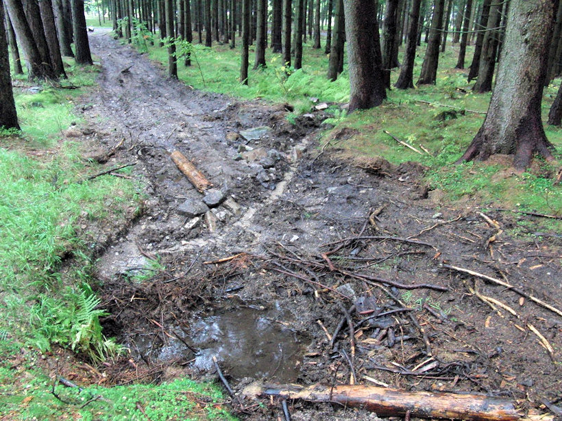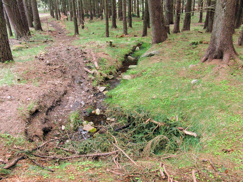 Září 2010 - po proběhlé těžbě dřeva prameniště změnilo podobu. Snažil jsem se usměrnit odtok vody tak aby zůstala v lese a netekla dolu na silnici. Částečně se to podařilo.