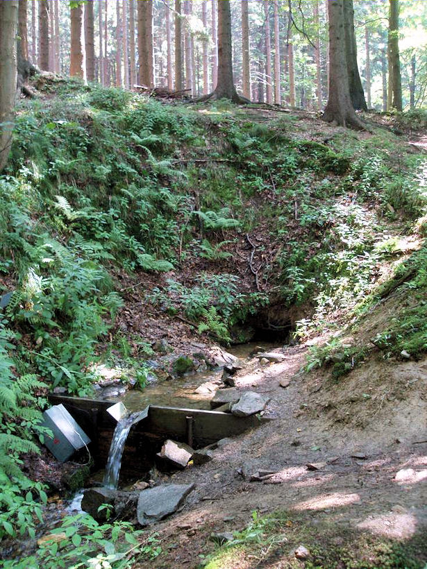 Červenec 2018 - pramen byl opraven, nyní je nad ním postavena jakási budka neznámého účelu a samotný vývěr je oplocen pletivem, je tedy o něco lépe chráněn proti kontaminaci. Aktuální foto Martin Mlečka