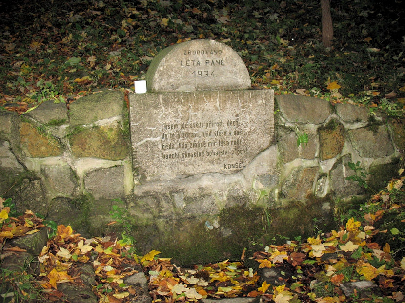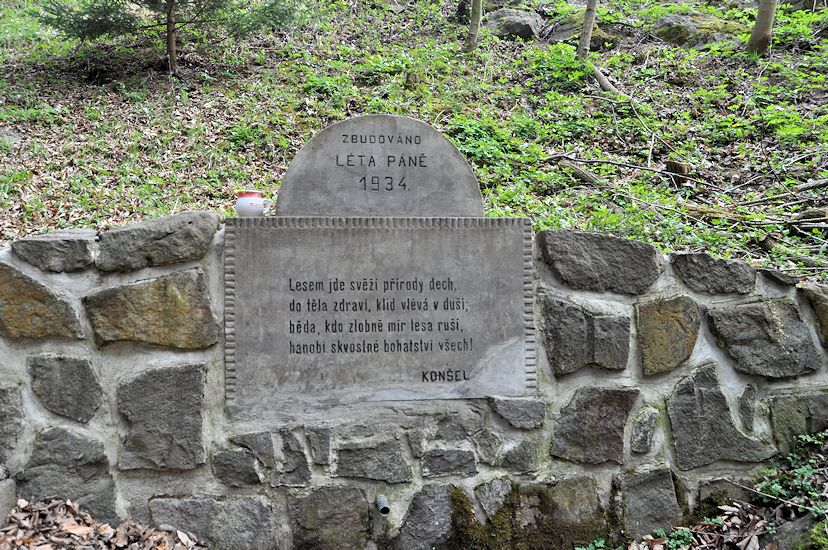 Tato drobná stavbička byla postavena v r. 1934 na bývalém polesí Jezírko v údolí potoka Melatín. Při stavbě lesní silnice v r. 1999 byla studánka narušena. Z těchto důvodů byla přemístěna na pramen níže ve žlíbku. Původní betonový blok s nápisem se zachoval a byl postaven na novou kamennou podezdívku. Studánka byla postavena na počest prof. Konšela z Lesnické fakulty Masarykovy university v Brně, a proto je na ní vyryt jeden z mnoha veršíků prof. Josefa Konšela. "Lesem jde svěží přírody dech, do těla zdraví, klid vlévá v duši, běda, kdo zlobně mír lesa ruší, hanobí skvostné bohatství všech!" KONŠEL. Nad veršíkem je nápis: ZBUDOVÁNO LÉTA PÁNĚ 1934.(Doplňující poznámka: v originálu verše prof.Konšela zní: "Do lesa nechoď, kdo nemáš citu, ničivé pouze snahy kdo znáš - vyhni se stromům, vyhni luk svitu, vyhni i nám - Tys nepřítel náš!"). Poznámku zaslal Pavel Kodýtek.