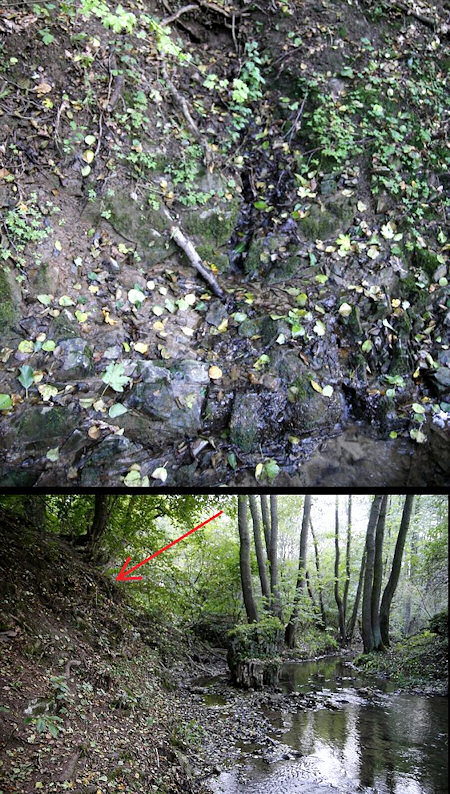 Pramínek vyráží na stráni téměř "zpod stromu" a to téměř na soutoku dvou potůčků. Uprostřed téhle rádoby křižovatky se nachází malá skalka. Dříve v těchto místech bývala hráz rybníka, který byl vybudován zřejme v 17. století, když se začala stavět Škvorecká obora.