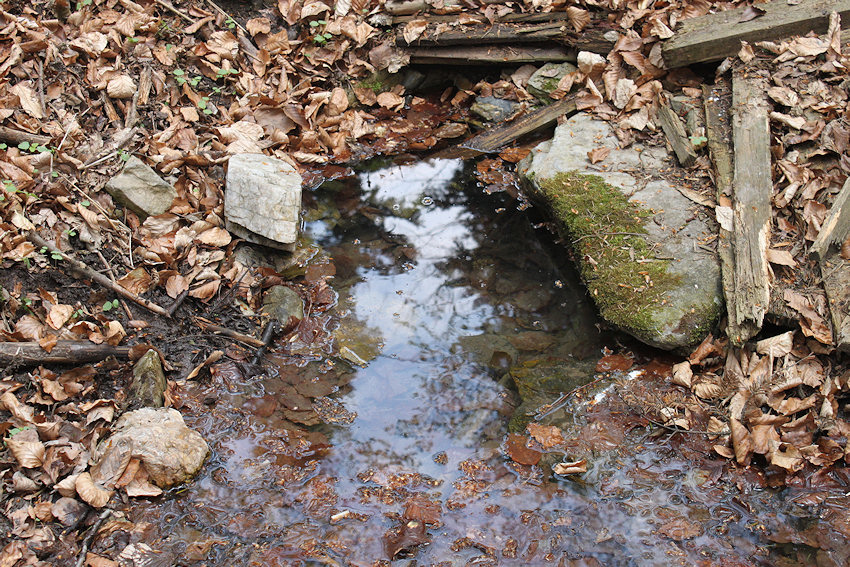 Leden 2021 - pramen úplně zarostlý náletovými dřevinami, téměr k nenalezení - Turistická skupina Šedí vlciVLCI PROSTĚJOV