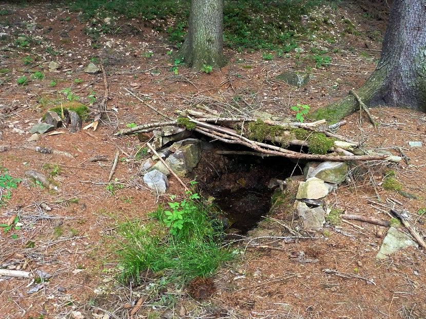Květen 2020 – studánka je zřejmě úplně vyschlá. Známky vlhkosti nejsou ani v půdě pod jejím dnem, ani v jejím okolí. Foto: Jan Zahradníček