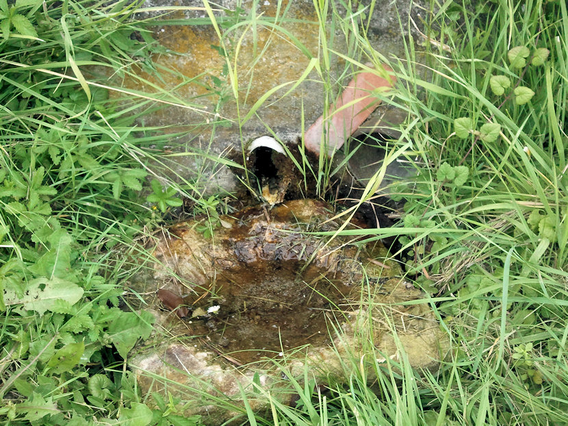 Srpen 2023 - velmi nenápadný zdroj se nachází v těsné blízkosti vozovky a vypadá na první pohled dost podezřele. Bílá omlácená trubka dost evokuje vyústění okapu z domu č. p. 694, stojícího bezprostředně nad zdrojem, ale vytrvale z ní vytéká slaboučký pramének i v době letního sucha a vedra. Voda má teplotu 19,9 °C, pravděpodobně tedy teče z větší dálky. Hypotézu o průsakových jezírkách na místě nic nepotvrzuje ani nevyvrací. Rozhodně se nejedná o rozumně využitelný zdroj, natož k pití. Aktuální foto: Martin Mlečka