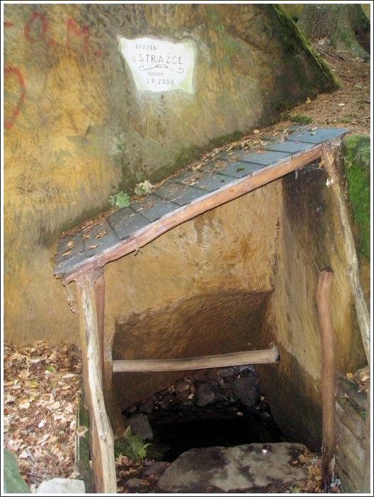 Bezodtoká čistá studánka U Strážce se nachází hned vedle cesty pod pískovcovými skalami na začátku skalního údolí vedoucího ke skalní kapli v Modlivému dolu (zelená a červená turistická značka). Obnovena byla v roce 2000. Navštíveno dnes (6.3.2014), stav odpovídá fotografii. Poznámku doplnil Milan Keršláger.