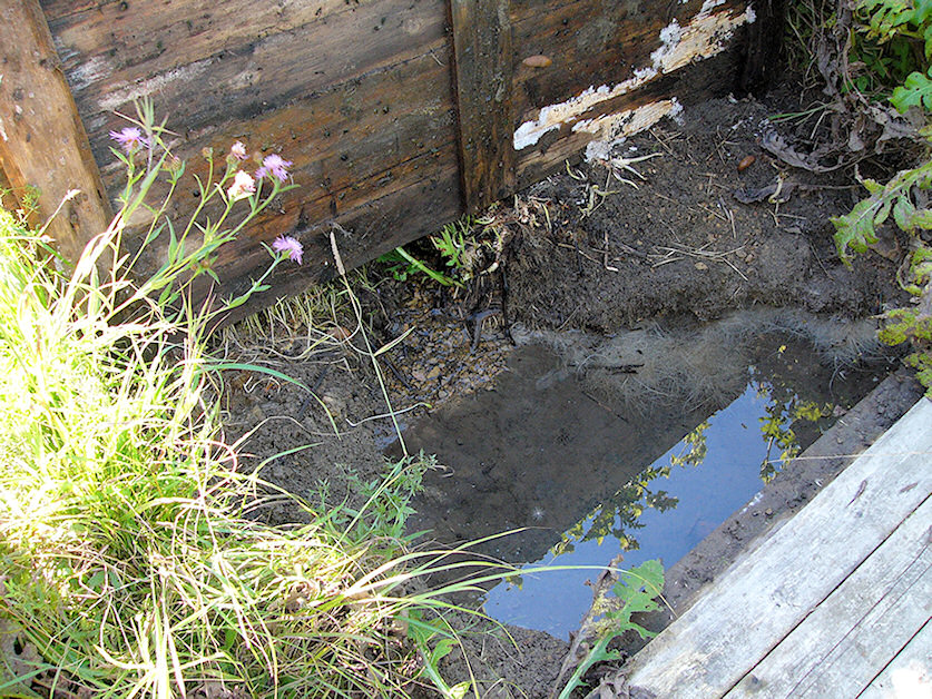 Prosinec 2015 - původní zaniklá studánka, z níž se posléze vytvořil pramen, nyní před lyžařskou sezonou 2015/16 upravena opět na studánku. Aktuální foto Petr Vomáčka.