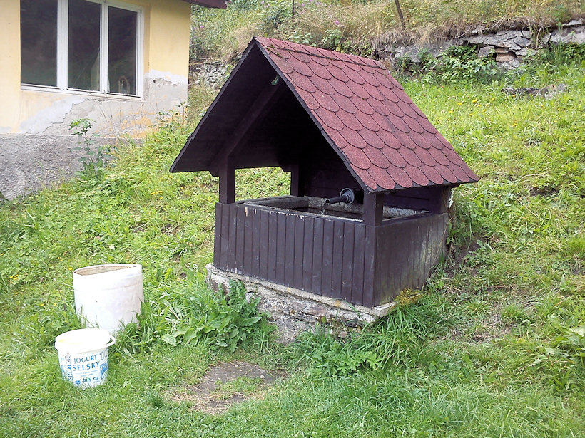 Srpen 2023 - u studánky přibylo nové posezení, voda teče a je dobrá. Aktuální foto: Ondra Lukáč