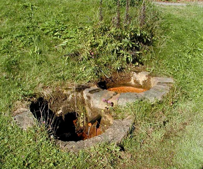 Září 2016 - okolo studánky vzrostlá tráva, skoro jsme jí nenašli. Vody je zkalená a nepřepadá trubkou do druhé skruže.