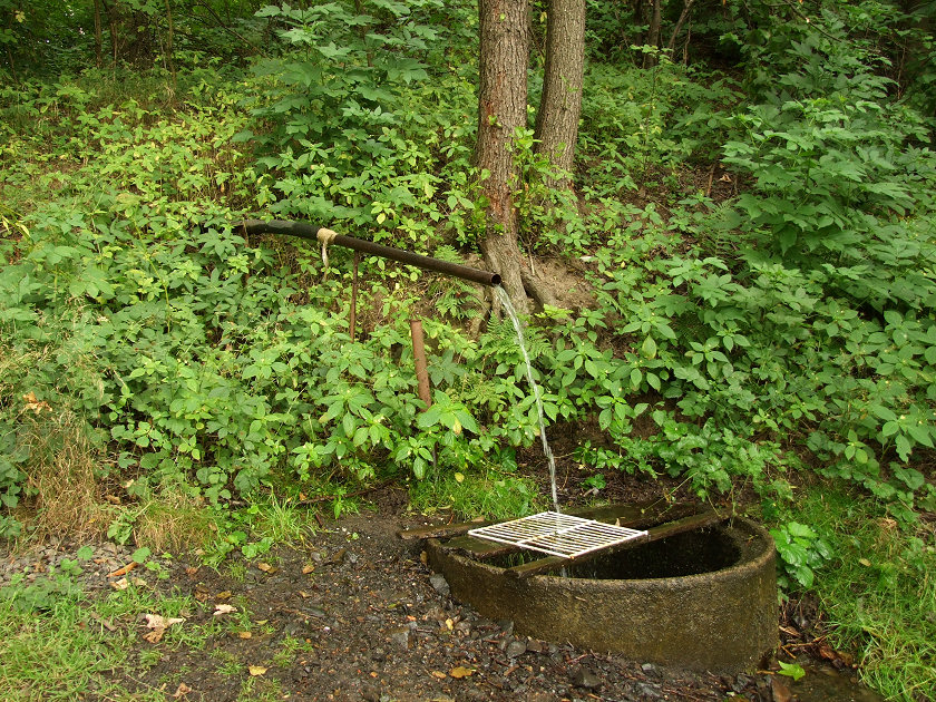 07.06.2014 - Osvěžující a čistá voda. Majitel sousedícího pozemku postavil za studánkou dřevěný plot.