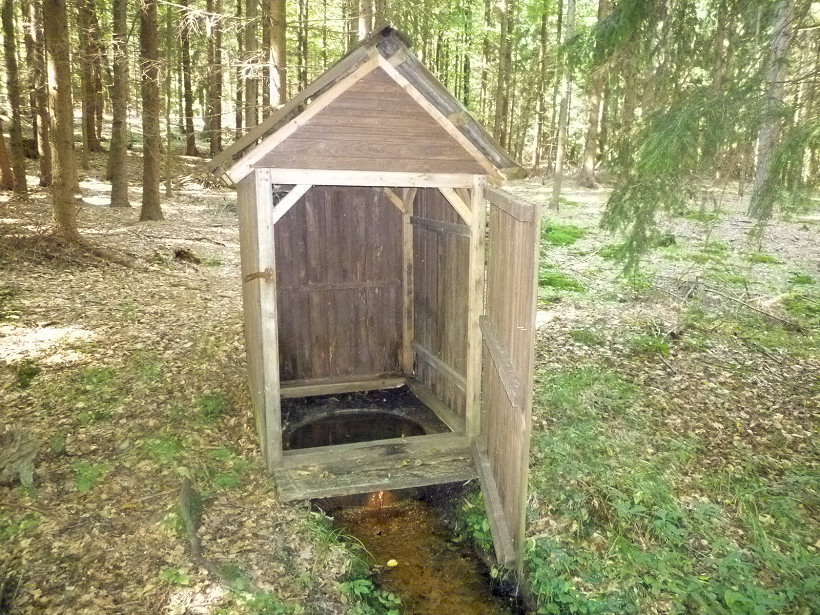 Červen 2017 - studánka fuknčni, voda je zřejme železitá (má příchuť a vytékající potůček je zbarvený do rezava).